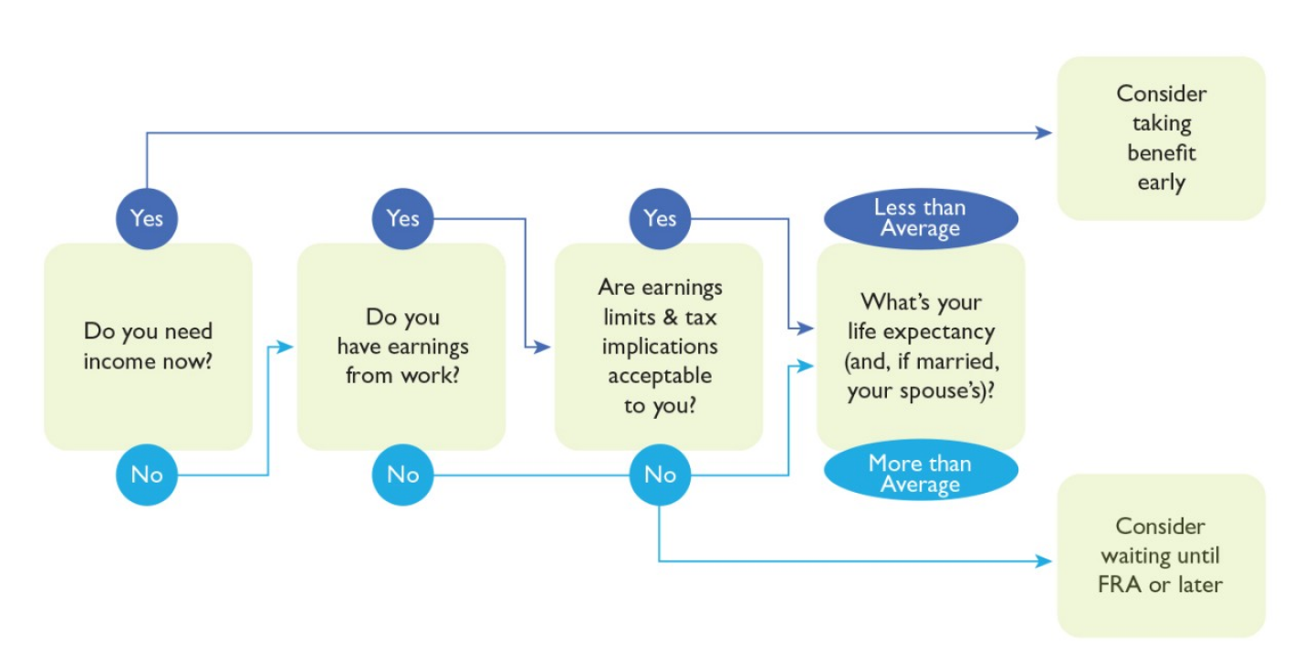 As clients decide when to begin their Social Security retirement benefits, they may want to refer to this helpful decision tree, which sums up many of the important considerations reviewed above: