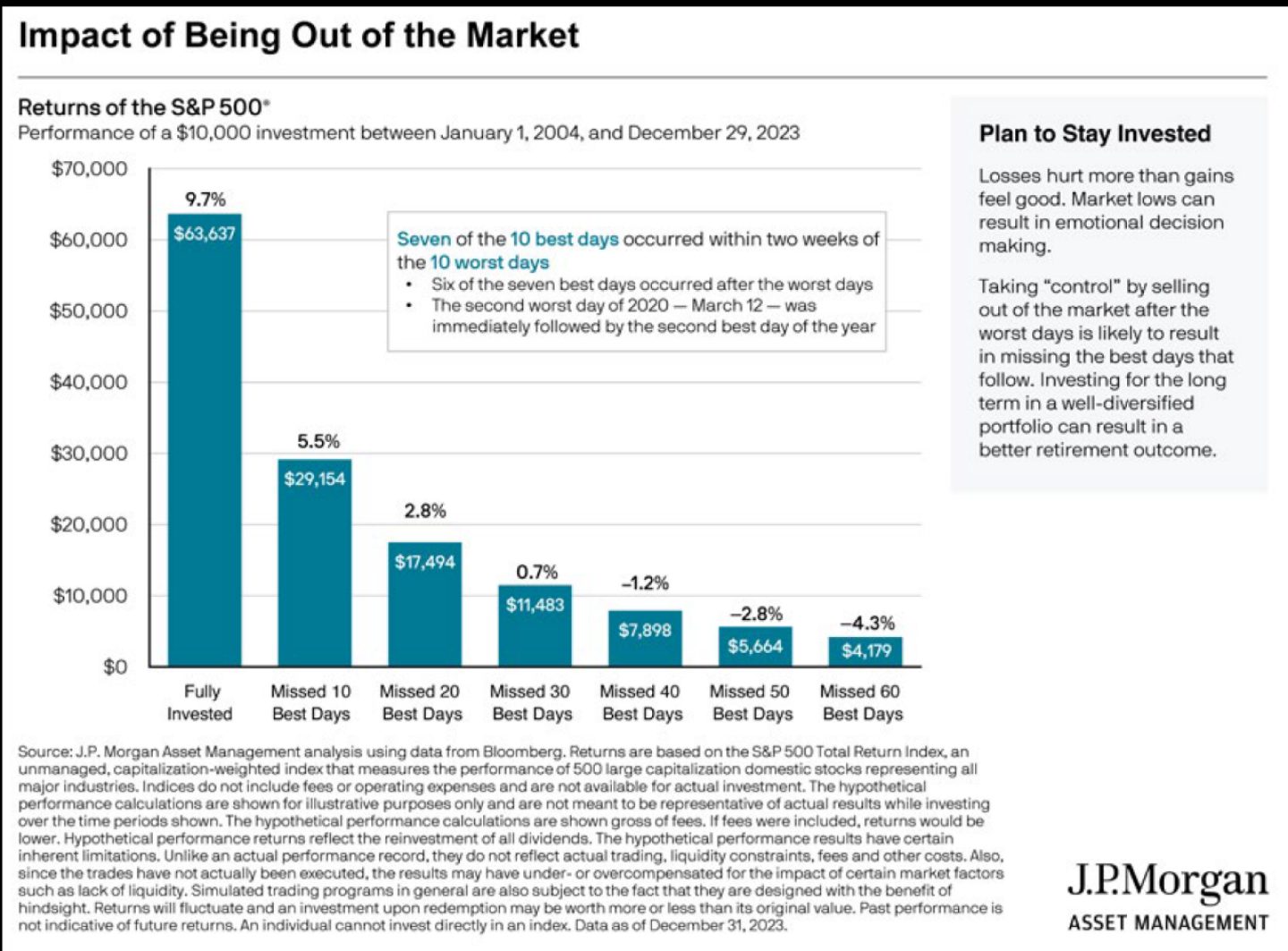 It goes without saying that clients may struggle with market volatility. Watching retirement savings decline by 10% or more right before retirement can call into question even the sturdiest of retirement-income plans and cause clients to act irrationally. They may want to flee to the presumed safety of fixed income or cash investments. But are clients really safer in those vehicles? When planning for a 20-plus-year retirement, it’s important to consider a long-term investment plan and the potential impact on growth if clients are out of the market. As you can see in the following example, getting out of the market—even for a brief time—can cause clients to miss opportunity and upside recovery.